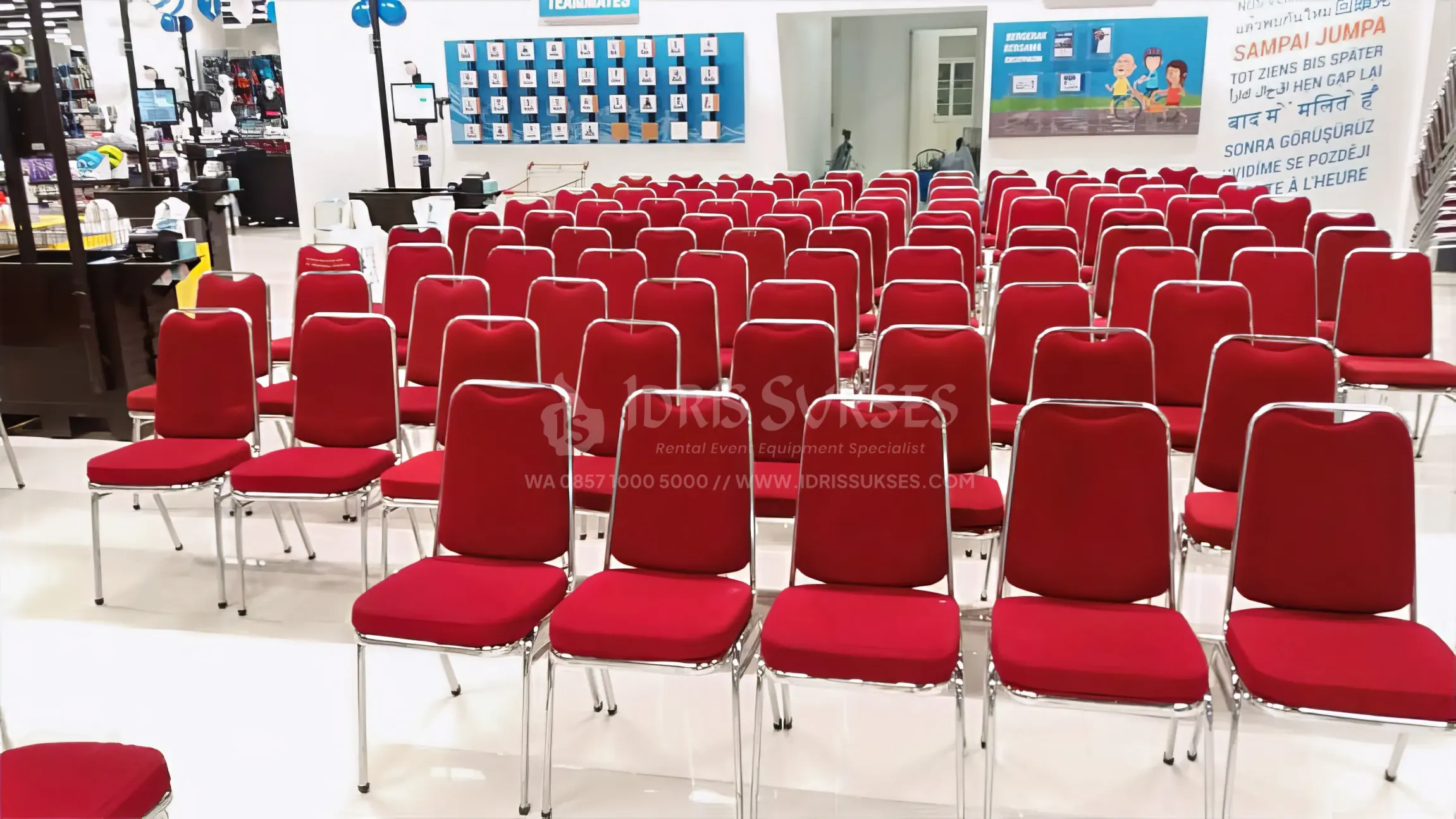 Kursi futura adalah kursi standar untuk berbagai acara formal dan semi formal. Nyaman, kokoh, dan mudah ditata dalam jumlah besar. Cocok untuk acara instansi, pernikahan, seminar, dan event outdoor. Sering digunakan karena rapi dan efisien untuk kapasitas tamu banyak.