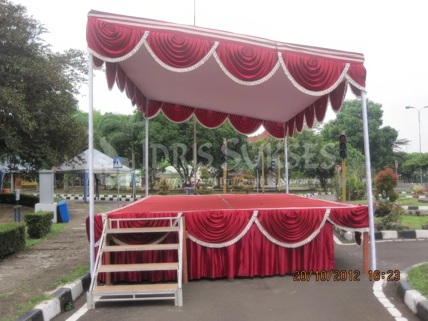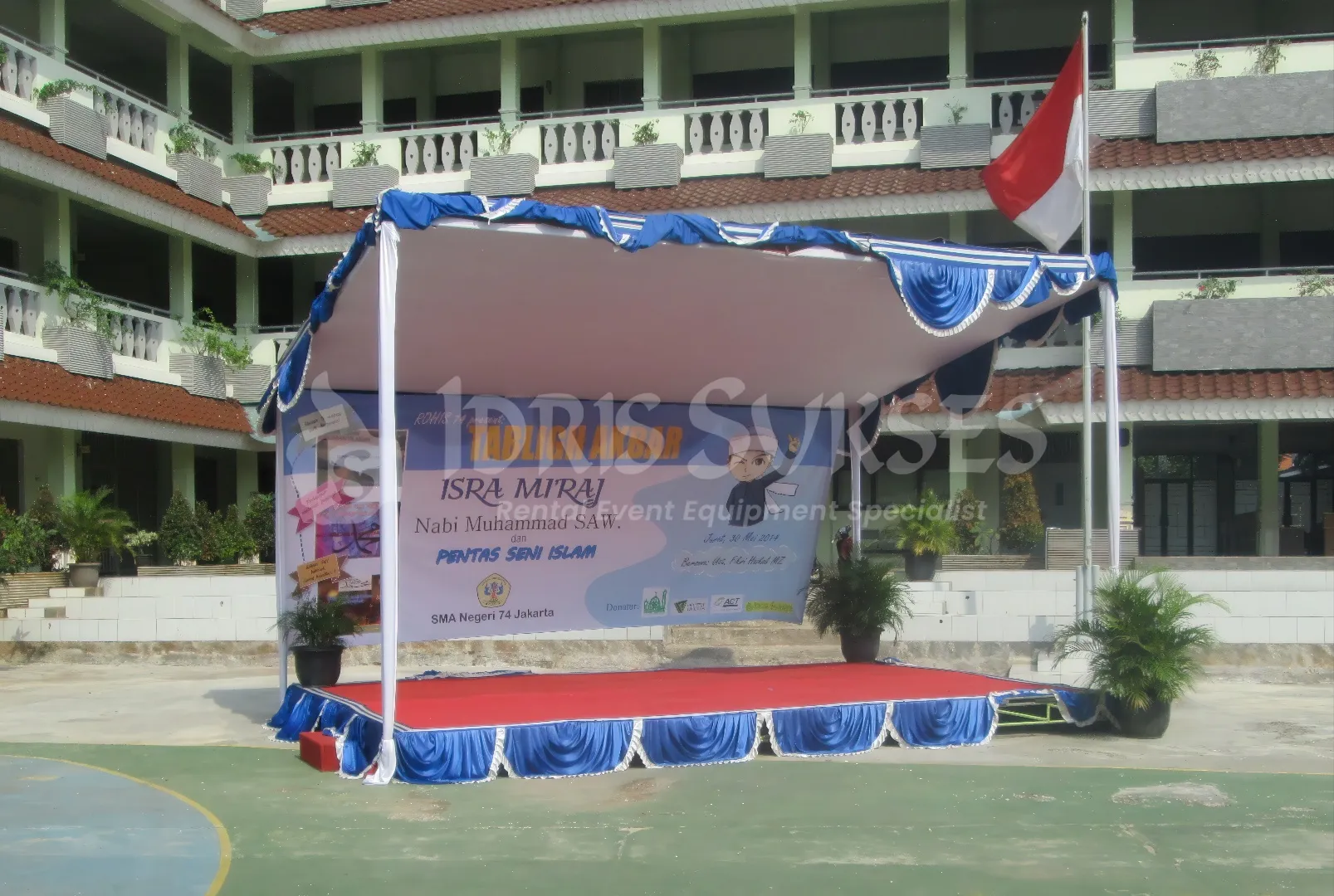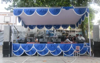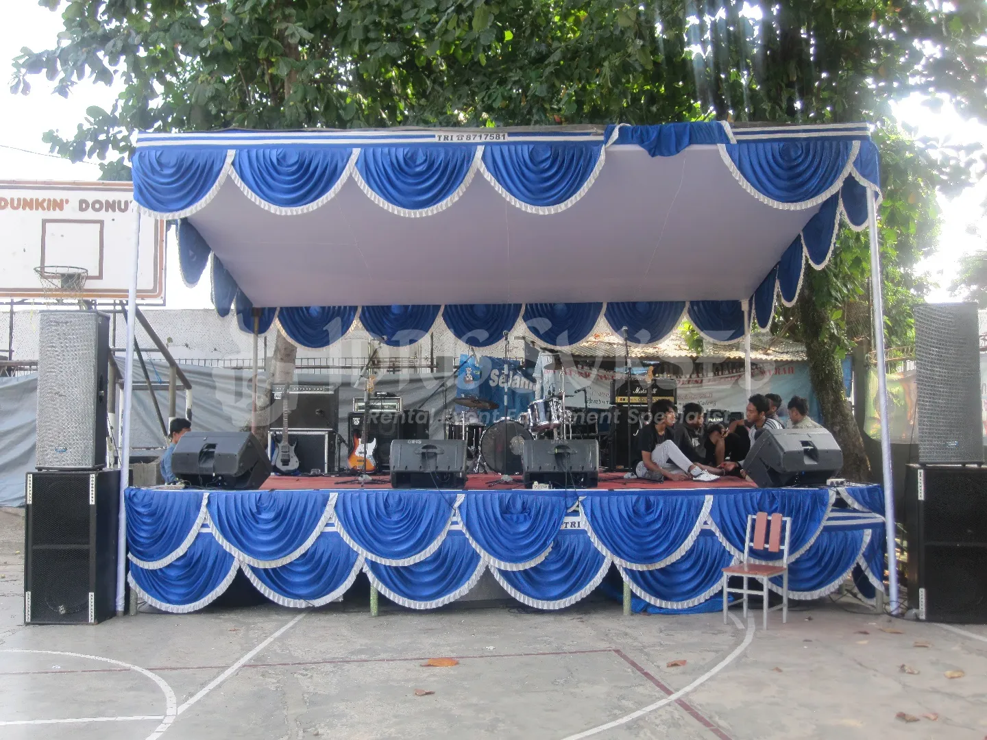 Panggung standar outdoor digunakan sebagai area utama aktivitas acara seperti pertunjukan, sambutan, atau hiburan. Sistem modular memudahkan penyesuaian ukuran sesuai kebutuhan.