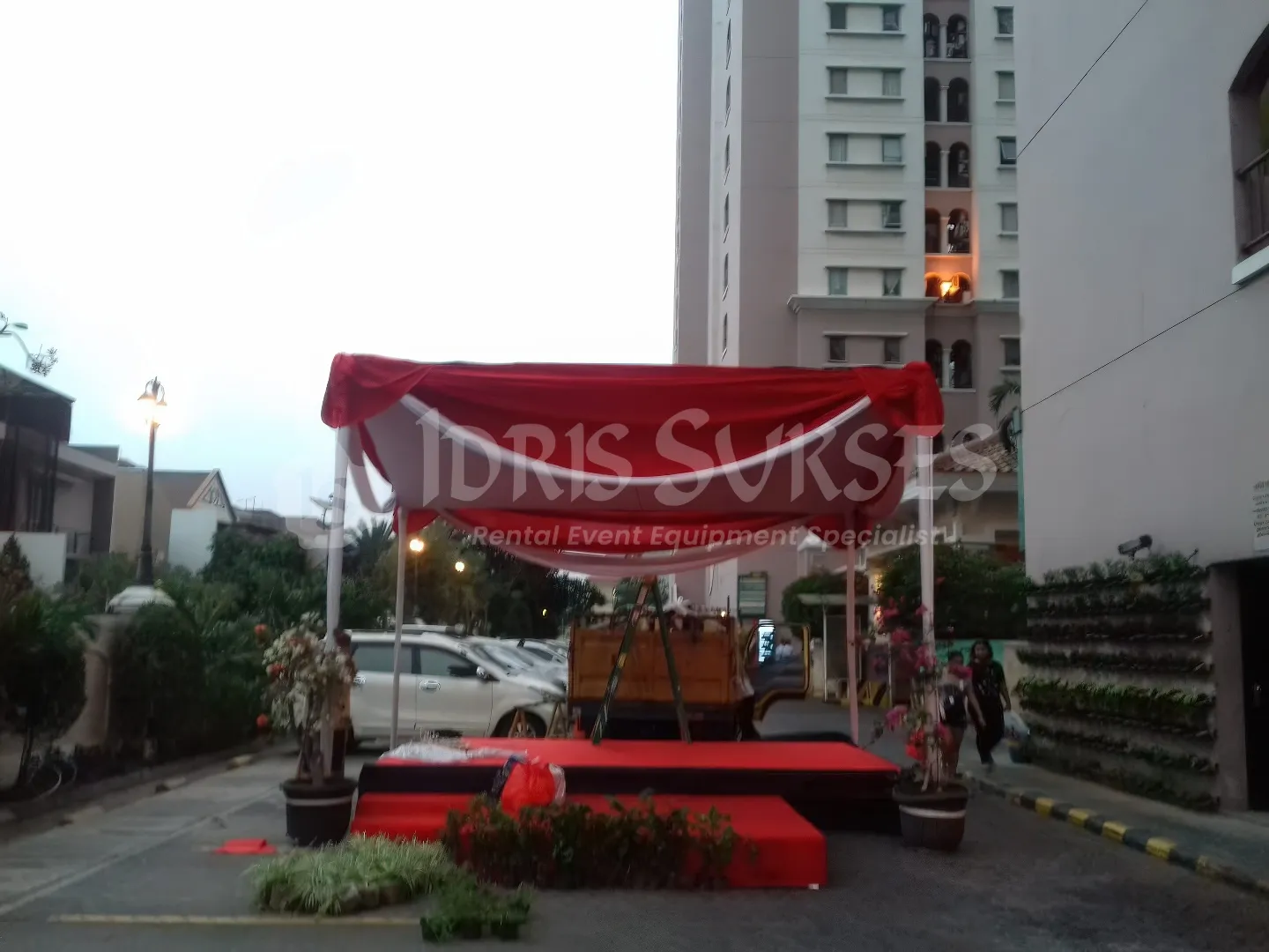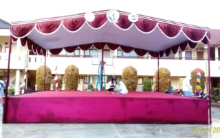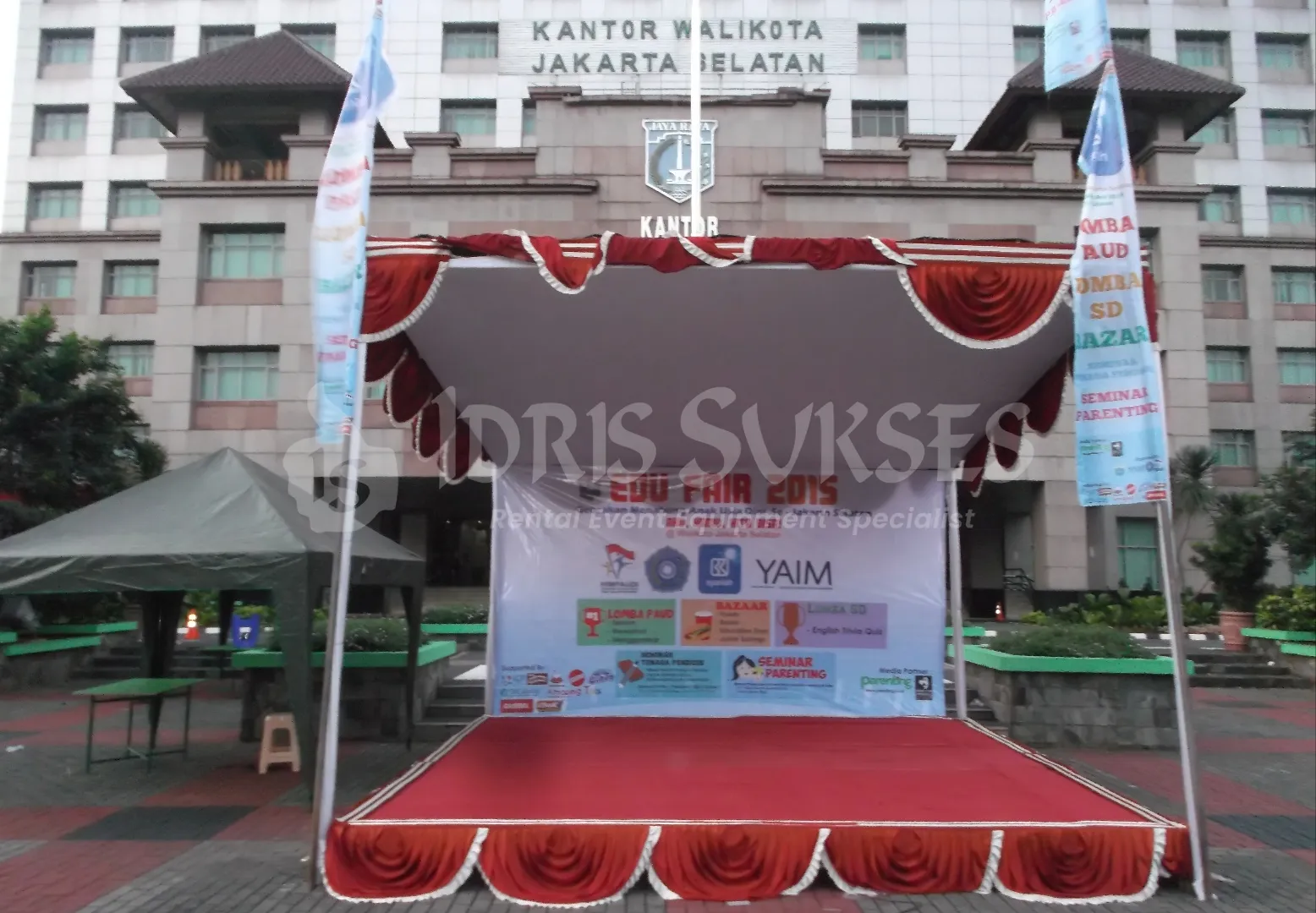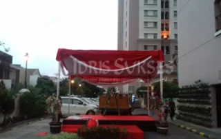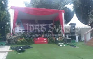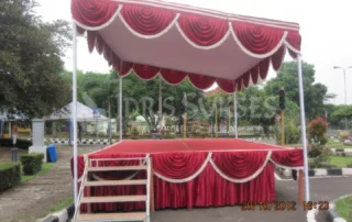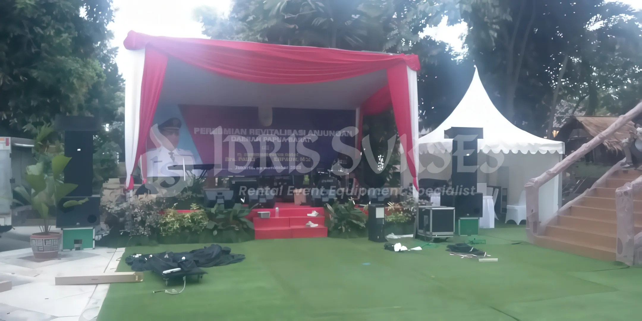 Panggung standar outdoor digunakan sebagai area utama aktivitas acara seperti pertunjukan, sambutan, atau hiburan. Sistem modular memudahkan penyesuaian ukuran sesuai kebutuhan.
